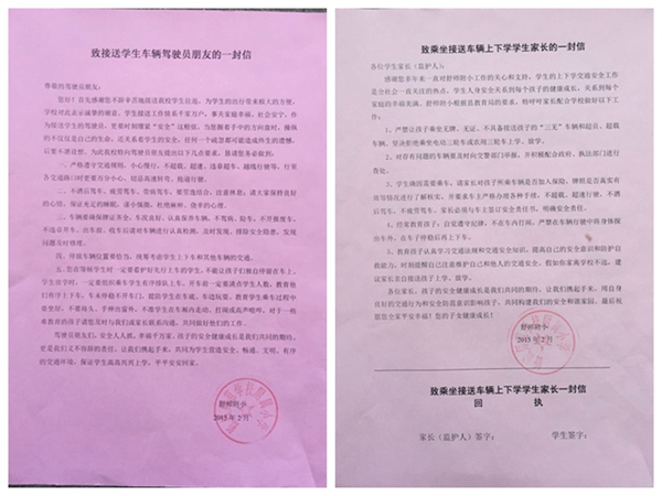检查中,舒师附小宋兴无校长汇报了该校在交通安全、校车管理中采取的有效措施。学校从思想上高度重视交通安全管理,一直在强化管理力度,确保安全,让每一位学生平安上下学,让所有家长放心。该校对乘坐车辆上学的学生进行了逐一登记,并向家长分发了《致家长的一封信》;对接送学生的车主进行了摸底登记,建立台帐,并发放《致驾驶员的一封信》等。随后,县交警大队一行认真查阅了《学生乘坐车辆登记》等有关信息,同时对接送车辆台帐、车辆行驶路线、驾驶员信息及学生信息等进行了登记。