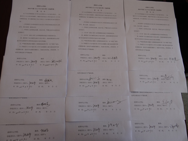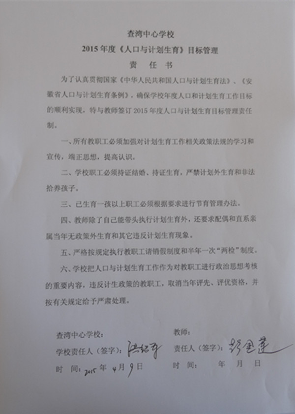 查湾中心学校签订2015年度《人口与计划生育》目标管理责任书