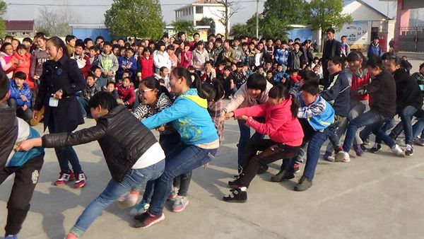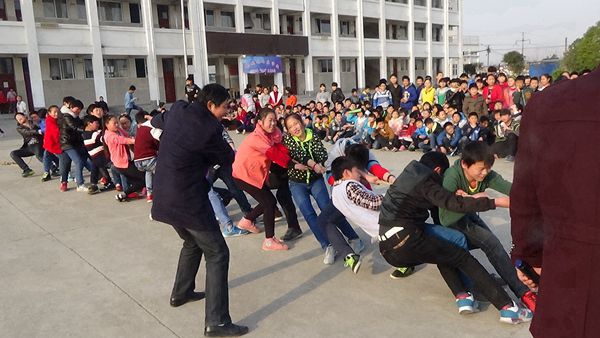 为丰富七年级学生的课外活动生活,促进学生之间的交流,发扬团队精神,增强凝聚力,学校于4月14日下午举行了拔河比赛。