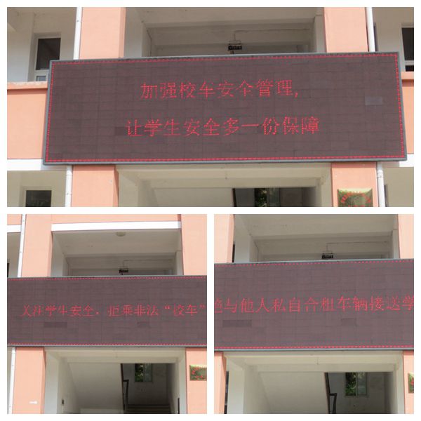 该校注重学生上放学安全教育,积极做好“六个一”工作。利用学校电子屏滚动播放教育宣传标语及防护措施;各班级利用班刊板报将相关保护措施及注意事项向广大学生宣传实、宣传透,并利用班会加强要求;学校利用晨会时间加强对学生的统一教育,要求学生时刻注意交通安全,尤其不要乘坐报废车、套牌车、改装车、三轮车以及超载车、酒后驾驶车等。对学生家长接送也提出明确要求,要求家长接送子女不得饮酒、不得超载,二轮摩托车只准接送自己孩子,不得顺道驮运其他学生;严禁学生骑摩托车等车辆上放学。学校也对等安全保卫部门提出明确要求,强调保卫科上放学要坚守岗位,明确职责,密切注意学生动态,确保学生上放学途中安全。