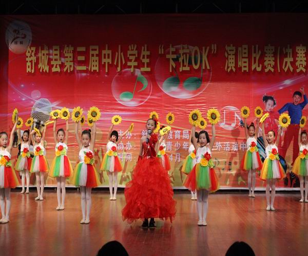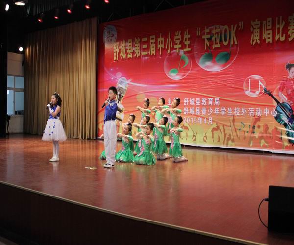 由县青少年校外活动中心承办的舒城县第三届中小学生“卡拉OK”演唱比赛(决赛)于4月8日在舒城一中大礼堂圆满落幕。