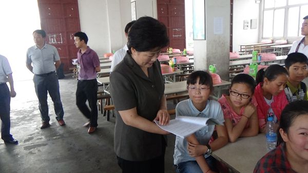 5月27日下午,县长张秀萍在县妇联、万佛湖镇党政负责人的陪同下冒雨来到万佛湖镇七星学校慰问留守儿童。