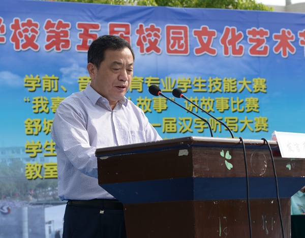 县教育局局长朱传友发表了热情洋溢的讲话。他代表舒城县教育局祝贺舒城师范学校“第五届校园文化艺术节暨学生技能大赛”顺利开展,对大赛表示高度肯定和赞扬,认为文化节再现了百年老校丰厚的文化底蕴,彰显了职业教育的特有魅力,唱响了舒城师范发展的新乐章。