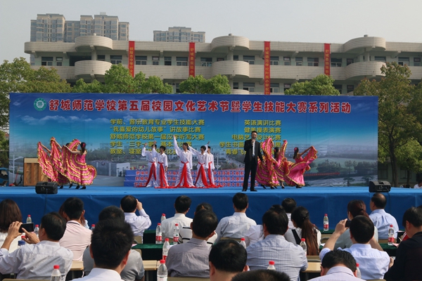 在精彩纷呈的“青春飞扬”文艺汇演中舒城师范学校“第五届校园文化艺术节暨学生技能大赛”圆满闭幕。据悉,此次文艺汇演中《墨徽韵》和《映满山红》两个歌舞节目来自舒城师范学校合作办学单位铜陵职教中心,在杨益民校长的带队下一行50人特地早早赶来助演,为两校之间搭建起一座相互交流学习的桥梁。