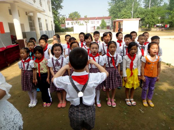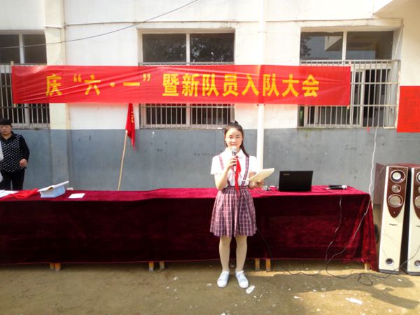 活动在嘹亮的少先队队歌声中拉开帷幕,全体师生起立,出队旗、唱队歌,该校大队辅导员汪萍老师向新老队员发表了热情洋溢的讲话,并祝贺全体同学们节日快乐。宣誓大会上,老队员给新队员佩戴红领巾,并带领新队员在队旗下宣誓。