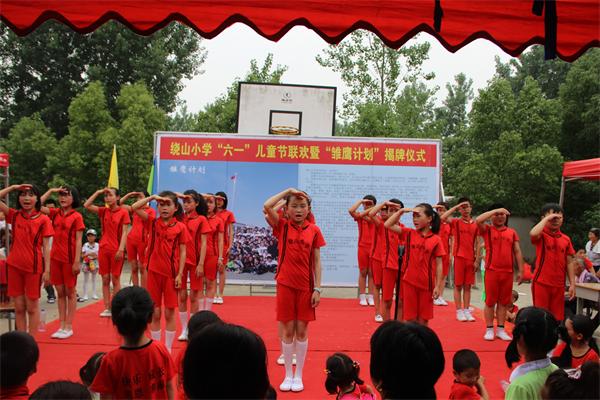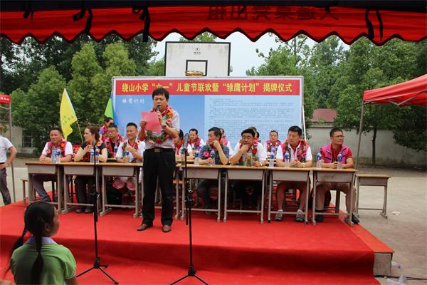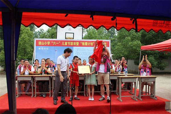 6月1日下午,干汊河镇绕山小学隆重举行庆“六一”联欢暨“雏鹰计划”揭牌仪式,清华大学创新管理与成长模式实战班120299班的全体同学、中心校校长、绕山村负责人、绕山小学全体师生及部分学生家长等参加。