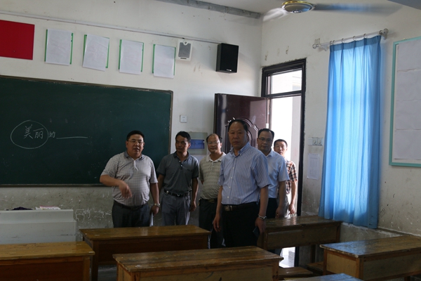 6月5日下午校领导全面细致检查考点布置情况,带领各部门负责人,走遍每一间考场,认真检查考场设施,从细节抓起,考虑周到。大到喇叭音响、桌椅摆放,小到地面卫生纸屑,逐一检查,发现问题当场解决。(特约通讯员:杨晓峰)