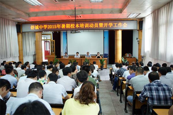 8月25日上午,舒城中学召开2015年暑期校本培训动员暨开学工作会。校长、校党总支书记何登保,副校长穆俊稳、孙发明,校长助理许国兵出席会议。