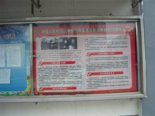 校团委利用升旗仪式、校园广播、橱窗、板报等宣传平台,开设专栏,广泛宣传,营造浓厚的舆论氛围;各班班主任老师召开“勿忘国耻 圆梦中华”主题班会,并利用“班班通”师生共同观看抗战影片;唐仲英爱心小分队队员带领班级学生阅读抗战题材图书,朗诵抗战诗歌,交流活动感受。