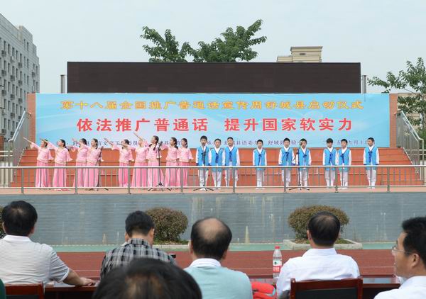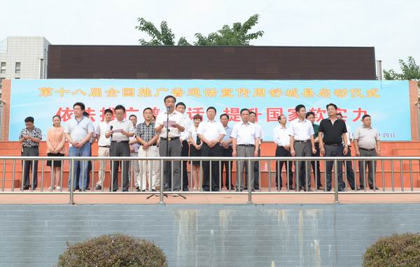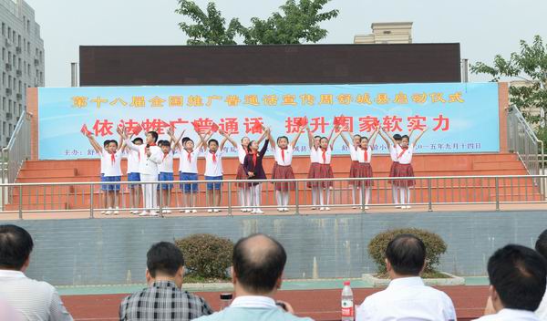 仪式上,首先宣读了《舒城县开展第18届推普周系列活动方案》。县语委办要求语委各单位和学校要开展好“推普周”系列活动,积极组织切实推进全县语言文字工作;扎实开展推普周“八个一”宣传活动和开展“中华诵.2015我的中国梦”演讲和经典诵读比赛活动等系列活动。将“推普周”活动与日常工作有机结合,在做好城市推普工作的同时,加大农村推普工作的力度,不断提升城乡人民群众规范使用国家通用语言文字的的意识和水平。