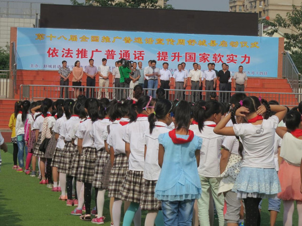 9月14日上午8时,城关幼儿园园长叶君娅带领参加演出的老师和普通话宣传员到达实验小学西校区,参加“第十八届全国推广普通话宣传周”舒城县启动仪式。