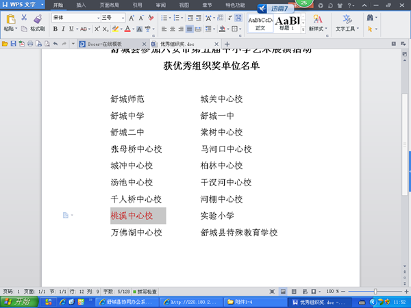 日前,舒城县参加六安市第五届中小学艺术展演活动评奖结果揭晓,有259件作品获县奖,18个单位获优秀组织奖。桃溪镇中心学校有22件作品获县奖,获优秀组织奖。(王振 特约通讯员:束永传)