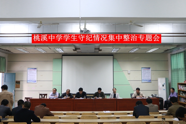 会上,校长助理、政教主任高传文首先带领导全体班主任学习了《桃溪中学学生守纪情况集中整治方案》,他指出本次集中整治的目的为“强化学生管理,维护校园秩序”,整治时间为10月11日至18日(一周时间);他要求各位班主任克服困难,严格按照值日表执行;并请班主任在各自班级做好布置和要求。