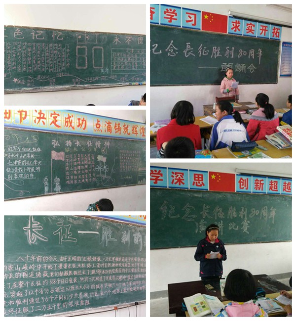 今年是红军长征胜利80周年,为进一步激发广大学子的爱党、爱国、爱校的热情,山七中心校开展了一系列纪念活动,引起了师生的广泛共鸣。