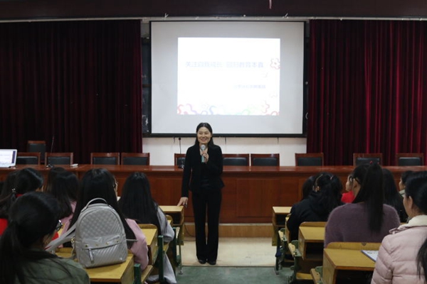 刘丽丽园长根据永红幼教集团的办学特色,开展《关注自我成长,回归教学本真》主题讲座。会场师生互动,气氛热烈。培训活动让学生在实习前真真切切的了解幼儿园里需要学习和掌握的知识。