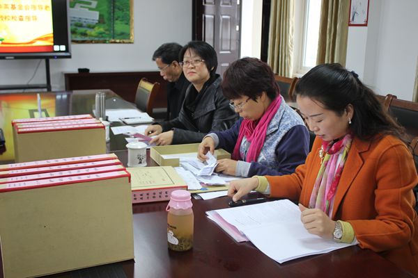 考察组一行听取中心校校长刘卫东关于学校基本情况、唐仲英爱心奖学金评选工作的情况介绍,认真查阅了近五年来爱心奖学金选票、发放签字表格、爱心小分队活动记录以及活动图片等资料。中心校分管负责人就唐仲英爱心奖学金评选及爱心小分队活动开展情况进行专题汇报。考察组就爱心奖学金的发放形式、小分队工作中的困惑以及优秀小分队奖金的使用等问题与学校爱心辅导员进行深入细致交流。
