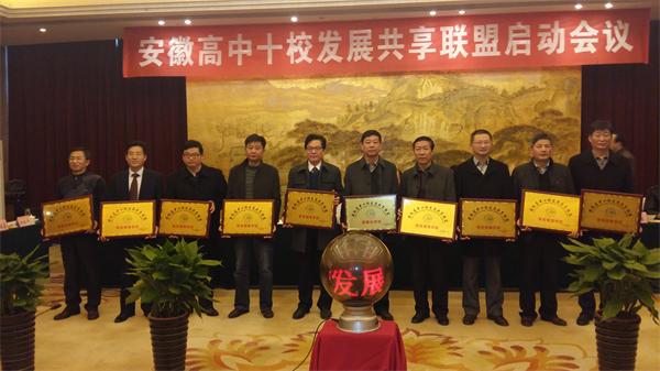 安徽高中十校发展共享联盟由巢湖一中、合肥八中、淮南二中、六安一中、南陵中学、舒城中学、太湖中学、天长中学、屯溪一中、宣城中学十所高中及皖智教育科技有限公司共同发起组成。该联盟是一个集学术性、互动性和服务性于一体的高中学校联合组织,以研究教育发展为内核,以共同研究、交流切磋、考察学习、研究联考为形式,促进联盟各校有效发展、共同发展。十所学校为联盟理事学校,大会推选合肥八中为首任理事长单位,联盟秘书处设在皖智教育科技有限公司。