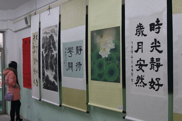 晋魏唐楷走龙蛇,皴擦写意染丹青。2016年1月11日舒城师范学校一年一度的迎春师生书画手工作品展开幕。