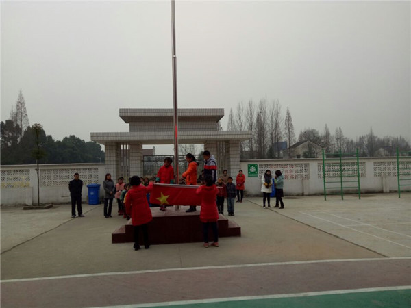 12月12日上午,冬日暖阳洒满干汊河镇顺河小学美丽的校园,激扬的《运动员进行曲》回荡在整齐的校园里,各班学生排着整齐的队伍,喊着响亮的口号来到操场,举行每周一次的升旗仪式,这周的升旗仪式显得格外庄重,因为学校新建成的旗台投入使用了。