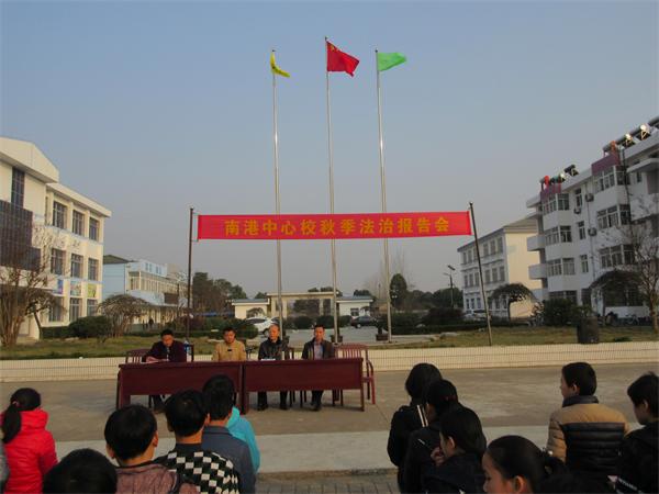 为进一步强化师生的法制意识,巩固平安校园的创建成果,日前,南港中心校邀请镇综治办、司法所等相关部门,为全校五百多名师生举行法制教育报告会。该镇党委委员、武装部长钟宏同志出席了会议。