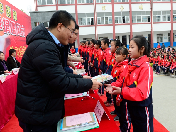 捐赠仪式上,吴延利代表民革安徽省委、杨丙红代表舒城县委、县政府分别致词,协鑫阳光慈善基金会秘书长费忠先生代表捐赠方授牌,三沟小学校长张建军回赠捐赠证书。孙玮女士在捐赠仪式上发表了热情洋溢的讲话,勉励学生能够好好利用这一批图书,认真学习,吸取图书中的养分,茁壮成长。李栋樑要求学生学会读书、读好书,养成读书的好习惯,学好知识,学好做人,立志成才,报效祖国,服务大众。