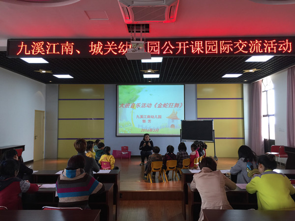 首先由九溪江南园郭芳教师执教了大班音乐活动《金蛇狂舞》,以亲切的教态、贴近幼儿的语言、独具匠心的图谱设计和形式多样的教学方法吸引幼儿们在轻松、愉快、富有情境的游戏、操作活动中自主探索、学习,彰显出先进的教育理念。随后,教师们进行了深入的研讨。研讨中,参加观摩活动的教师们踊跃发言、各抒己见,教学活动的指导老师也分别对本次教学活动作了点评,最后“黄海清名师工作室”负责人黄海清和城关幼儿园黄娟主任分别对这两个活动做了详细的点评和指导,让参加观摩的教师受益匪浅。