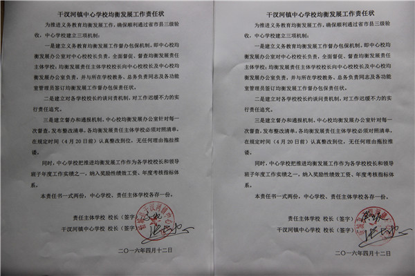 会后,中心校校长与各均衡发展主体责任学校校长签订了责任状,并要求各校校长与承担均衡发展工作的具体负责同志、各功能室负责同志签订责任状,打响义务教育均衡发展攻坚战。(特约通讯员:吴本和)