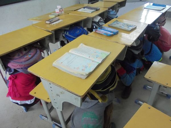 上午9时20分,随着急促的警报声(铃声)响起,同学们知道“地震”来了,便火速双手抱头、闭眼蹲在各自的课桌下应急避险;警报声再次响起,同学们在老师的指挥下按预定的逃生路线迅速地撤离到学校操场的安全地带。整个演练活动紧张有序,有条不紊,同学们个个安然无恙。