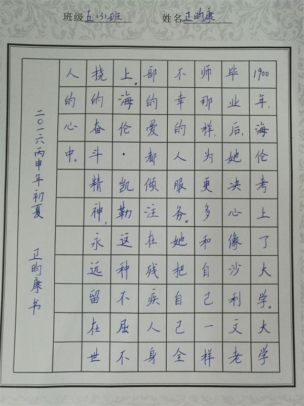 此次比赛要求一二年级是铅笔字,三四年级为钢笔字、毛笔字。比赛内容分为自选和规定两种形式。比赛前,各班老师积极动员,认真指导,学生认真练习。赛场上,同学们专心致志,一丝不苟。赛后,评委们本着公平公正的原则从书写规范、整体效果、间架结构对每个选手的作品进行评价。