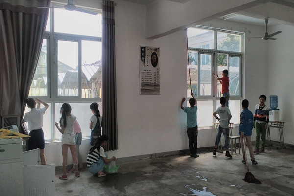 为了进一步培养学生的劳动意识,净化校园环境,6月14日下午,舒茶镇龙王庙辅导区小学组织学生开展了全校卫生大扫除活动。