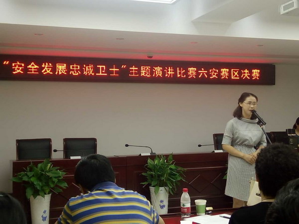 为落实全国第十五个“安全生产月”活动,弘扬安全文化、普及安全知识、凝聚安全发展共识,6月12日,六安市举办了“安全发展忠诚卫士”主题演讲比赛(六安赛区决赛)活动。代表县教育局参加比赛的石莉丽老师在舒城县的演讲预赛中脱颖而出,又代表舒城县参加了此次市演讲决赛。