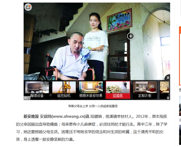 她的事迹被《新安晚报》、安徽新闻网、凤凰安徽网等多家媒体报道后,在桃溪中学师生和家长中引起强烈反响;她身上表现出来的孝顺的美德和坚苦卓绝的精神被广为流传。(特约通讯员:吴陆成)