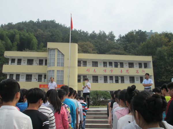 新学年伊始,在每周一升旗仪式上,庐镇乡中心学校继续开展“国旗下讲话”系列教育主题活动。九月份的教育主题为“英雄主义”教育。由黄书怀副校长主持,每周一各班选派一名学生作主旨演讲,全校师生参加。