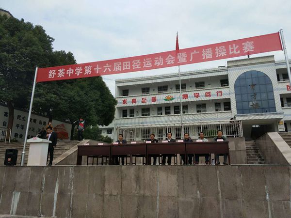 10月26日上午,沐浴着和煦的阳光,洋溢着自信的微笑,挥洒着金秋的喜悦,舒茶中学第十六届秋季运动会暨广播操比赛在全校师生的翘首期盼中如约而至。随着运动员进行曲的响起,各班学生迈着整齐的步伐、以饱满的精神依次进入运动场,并举行了庄严的升旗仪式。副校长徐松泉致开幕词,他对全体裁判及观众提出了要求,勉励全体运动员发扬奥运精神,顽强拼搏,服从裁判,尊重观众,充分发挥自己的实力和优势,力争取得最好成绩。校长周国权宣布本次运动会正式开幕。