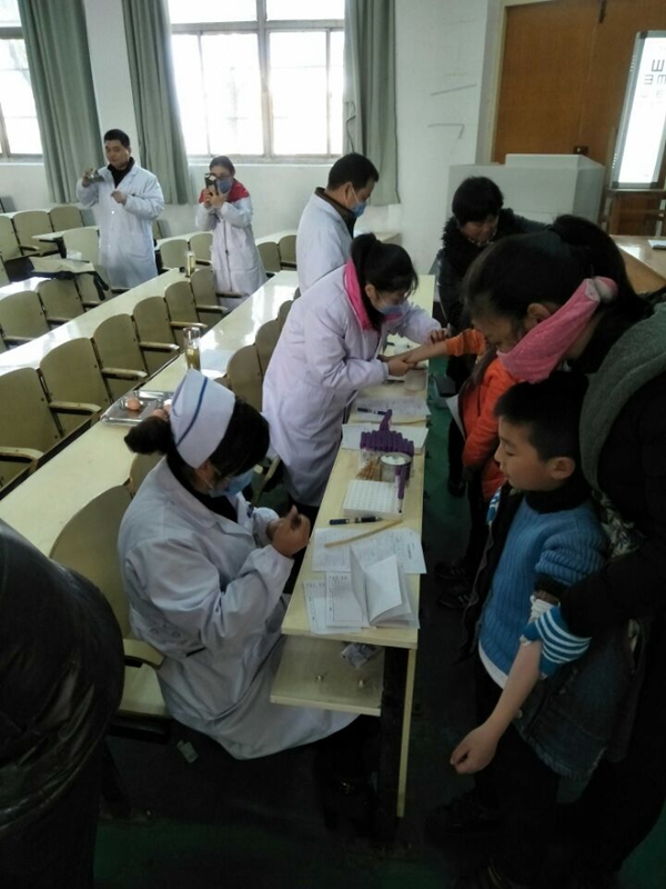为及时了解和准确掌握学生的健康状况和生长发育情况,保障学生的健康安全。12月12日,柏林卫生院体检中心的医务人员,对石岗中学小学部一年级学生进行了健康体检。本次体检主要有以下项目:测量身高、体重、视力、内科、外科、口腔科、眼科、五官科、抽血化验肝功能。(宋志华 特约通讯员: 吴本羽)