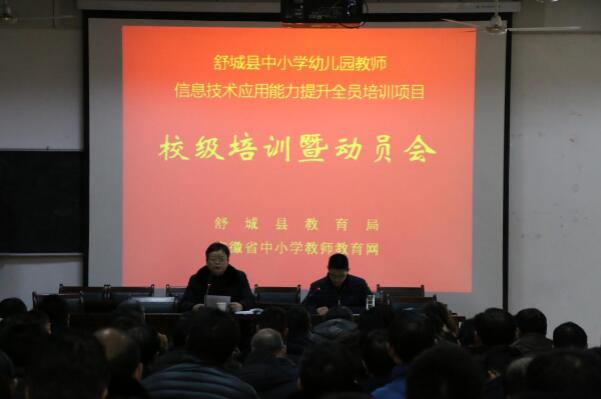 2月24日上午,舒城县中小学幼儿园教师信息技术应用能力提升全员培训工程校级管理员培训暨动员会议在舒城二中召开。来自全县各完职中、中心校、县直学校、初级中学分管副校长及学校培训管理员近110人参加了会议。