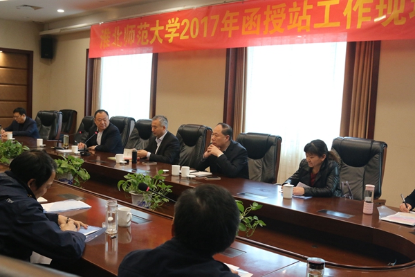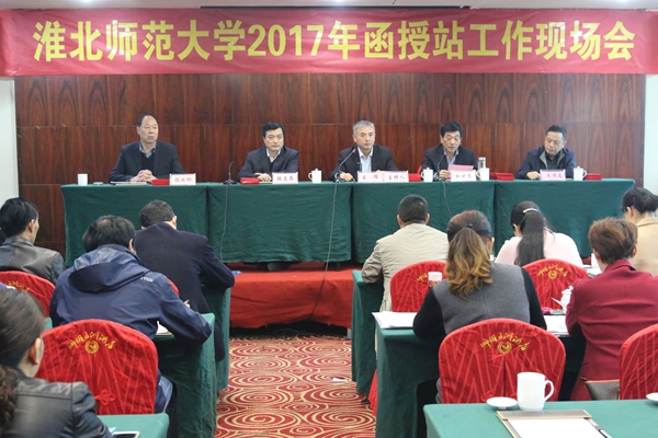 淮北师范大学继续教育学院院长王璨作题为《适应新形势,实施新举措,实现新挑战下的新突破》的工作报告,对2017年成人教育远程化教学及管理工作、招生工作等进行了具体的安排和部署:一要转变招生工作思路,稳定招生规模,提升办学层次;二要加大网络课程建设力度,积极推动远程化教学模式改革;三要加强函授站管理,推动函授站向数字化学习服务中心转型升级。