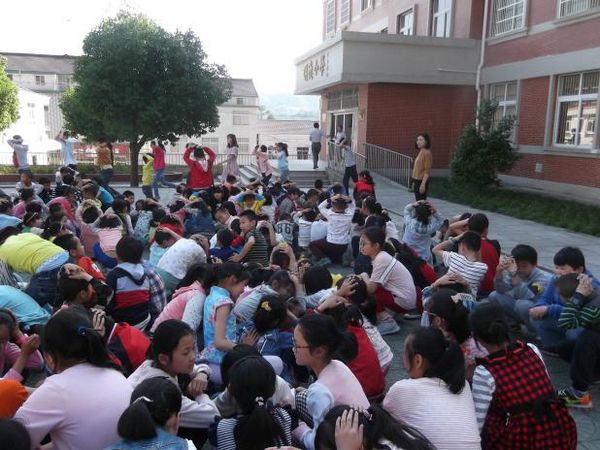5月19日下午,庐镇乡中心学校小学部全体师生参加防震、防灾疏散逃生演练。