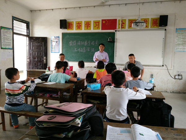 5月19日,柏林乡杨店教学点组织师生认真学习县教育局下发的《舒城县教育系夏季消防检查暨党的十九大安保消防安全检查工作方案》。