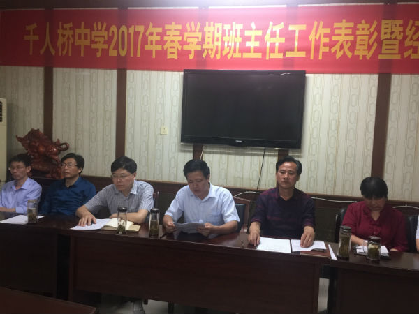 会议首先由束俊副校长宣读了获得“文明班级”称号的班级名单;接着政教处主任束永柱就“文明班级”评选作了说明,要求各位班主任多关注学校的信息,利用好微信平台,更有效的做好班主任工作,并对国家助学金资助工作做了相关布置,他以《不忘初心,继续前进》为题,对班主任工作进行了具体的指导;随后,孙良齐、黄玉发两位优秀班主任在会上作了经验交流。