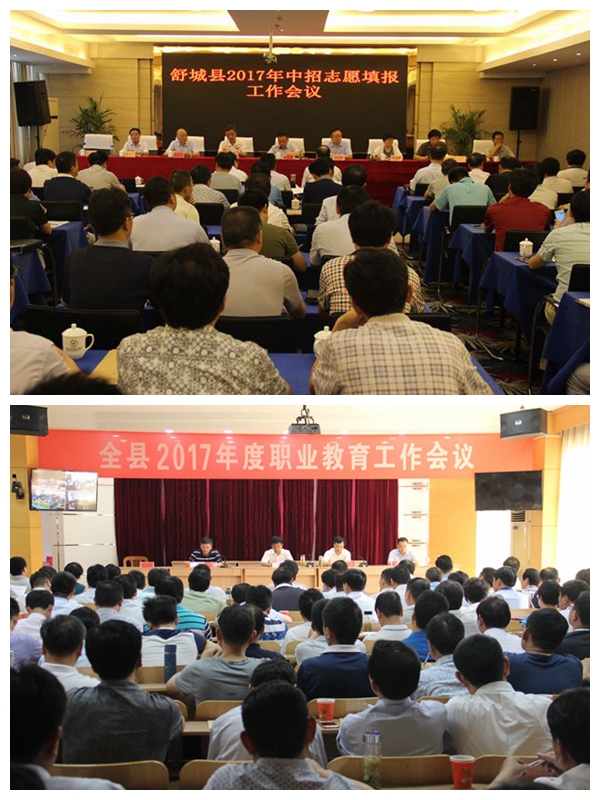 高规格动员部署。我县成立了以县长为组长的全县职业教育改革和发展领导组。县政府办印发了《关于统筹高中阶段学校招生工作的通知》,对规范中招工作提出七个方面的明确要求,同时还明确了各乡镇、村和县职业教育改革和发展领导组成员单位的职责。6月1日,县政府召开了2017年全县职业教育工作视频会议,全面总结和部署中职教育工作。县委常委、县政法委书记杜世忠,县政府副县长张志存出席会议并作强调讲话,会上,县政府与各乡镇,县教育局与各生源学校还分别签订了《舒城县2017年中职招生工作责任书》。7月2日,县教育局召开2017年度全县中招志愿填报工作布置会。会议对今年中招志愿填报工作具体业务进行培训,对中招工作纪律进行统一要求,对统筹高中阶段招生工作,尤其对中职招生工作作进一步部署和要求。会上,县教育局局长朱传友明确提出要举全县之力,集全系统之力,打赢中职招生工作攻坚战,打响中职教育发展第一枪。