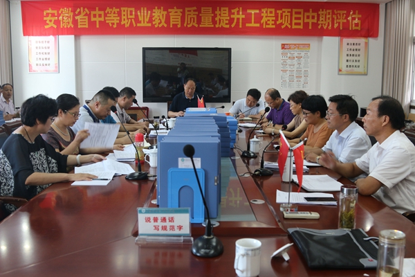 8月23日下午,六安市专家组到舒城职业学校开展评估工作,对安徽省中等职业教育质量提升工程项目中期评估。