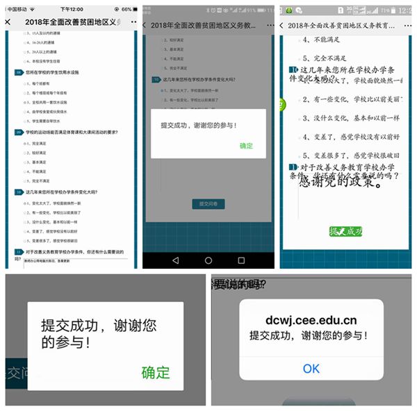 该校在测评前做了充分准备工作,明确了专人负责该项工作,利用校群创建快捷方式,便于受测评教职工快速登陆平台完成问卷,同时要求班主任通过班班通参与指导测评的学生,统一登陆“2018全面改善贫困地区义务教育薄弱学校基本办学条件工作专项督导调查问卷”平台,独立自主地完成网络调查问卷,如实地反映了学校“全面改薄”的基本情况。