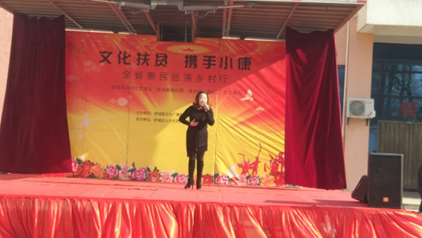 12月29日上午午,由舒城县文化广播电影电视出版局主办,舒城名人大世界文化传媒有限公司承办的“送戏曲进校园、进乡村、进社区”文艺演出走进干汊河中学。