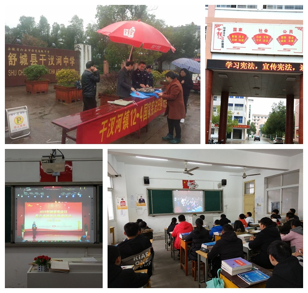 此前,为做好今年的国家宪法日学习教育活动,干汊河中学积极开展了形式多样、内容丰富的法治教育、学习、宣传活动,把宪法学习日教育活动和学习十九大内容有机结合起来,扩大了党员宪法意识、法治理念、法治思维。各班级组织学生以团日活动、志愿者活动为载体,进行宪法知识宣传、“向宪法宣誓,遵纪守法仪式”、“宪法•法律•廉洁在我心”主题班会、主题演讲比赛等活动。