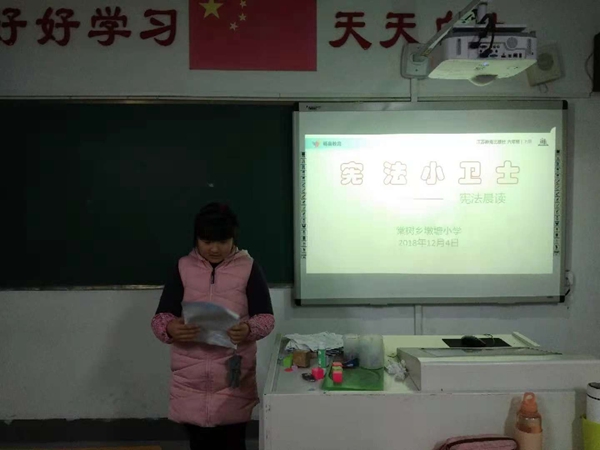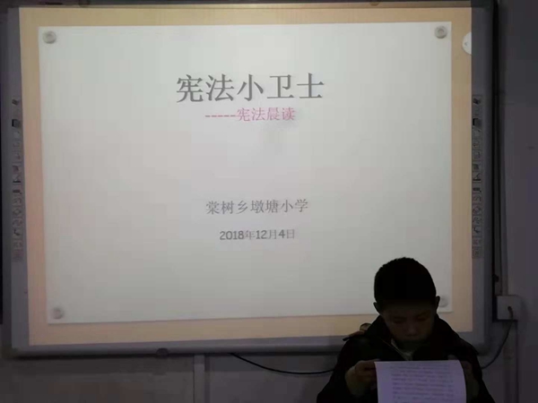 该校在12月4日以班级为单位,组织学生观看宪法教育视频,并进行宪法晨读活动。通过观看视频和晨读活动,使学生了解到:宪法是国家的根本大法,具有最高的法律效力。全国各族人民都必须以宪法作为根本的行为准则,并负有保护宪法尊严、保证宪法实施的职责。在活动过程中,各班主任老师对学生不懂的地方进行了耐心细致的解读,使学生进一步明确了每一位公民在宪法中应享有的权利和应尽的义务,从而增长了宪法知识,也增强了争当“宪法小卫士”的意识。(朱纯贵 特约通讯员:程宗听)
