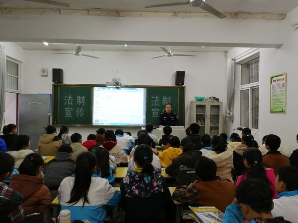 12月4日上午9:00,组织全校500多名师生登录普法网,远程参加了由教育部主办的“宪法晨读”活动。同学们通过网络直播,同步观看升旗仪式,高唱国歌。部领导领读宪法,同学们同步跟读。聆听了《宪法伴我们成长》歌曲。观看了4名优秀学生“学宪法讲宪法”的精彩展演。下午,邀请了庐镇乡派出所所长在法治副校长的陪同下,给学生上了一堂生动的法制讲座。
