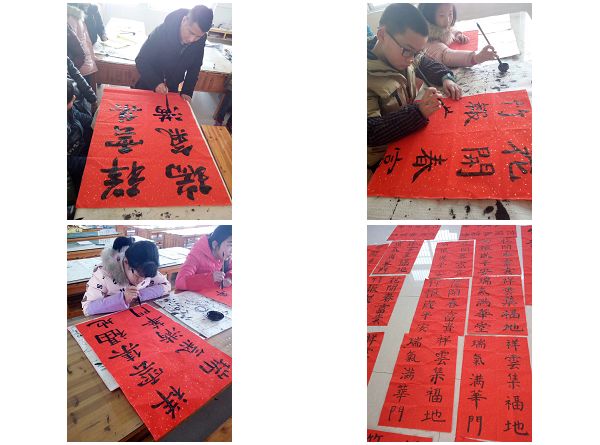 2月7日下午,同学们齐聚书法教室,铺好纸张,饱蘸浓墨,润圆笔锋,提笔挥毫,随着笔锋或抑或扬,一幅幅或工整,或美观的春联跃然纸上,虽然习字时间不长,但个个写得像模像样,看着自己的作品,孩子们异常兴奋,纷纷表示在新的一年内,要好好练字,好好探究,争取创作出更满意的书法作品。(刘卫春 特约通讯员:许娟)