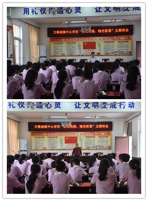 6月7日下午,万佛湖镇中心学校组织开展了以"崇尚英雄,精忠报国"为主题的班会活动,让学生传承和弘扬英烈精神、爱国精神,深入培养和践行社会主义核心价值观。