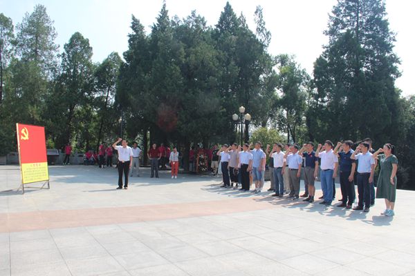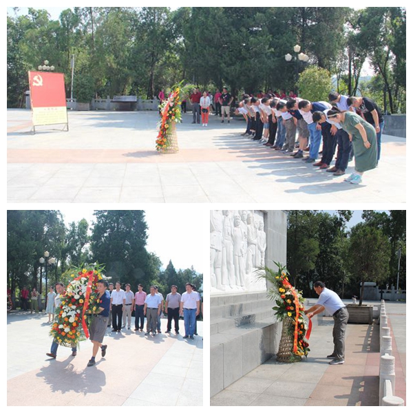 在红军广场,由刘伯承元帅亲笔题词“燎原星火”的革命烈士纪念碑赫然矗立在广场中央,彰显生生不息的红色革命精神。冒着酷暑的县教育局党员们佩戴党徽,怀着无比崇敬的心情瞻仰了革命烈士纪念碑,并列队向革命先烈们三鞠躬;局领导杨光耀、汪泽雨代表教育局向烈士们敬献了花篮,表达了对革命先辈的崇高敬意和无限追思;局党组书记、局长朱传友为敬献的花篮整理了缎带。随后,参加活动的全体党员高举右拳,面对鲜艳的党旗庄严宣誓,在党总支专职副书记的带领下重温了入党誓词,使每个同志受到了一次党性教育,更加牢记入党初衷和奋斗的目标。最后,党员们相继参观了红军纪念堂、红军烈士墓园、洪学智将军墓,一路走来缅怀先烈,铭记历史,深感今天幸福生活来之不易。